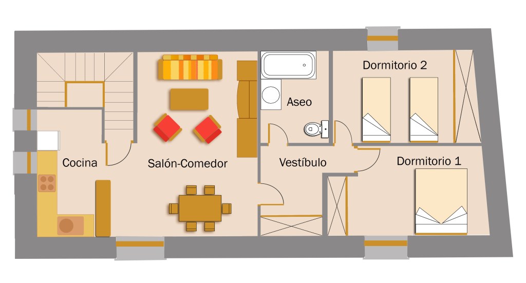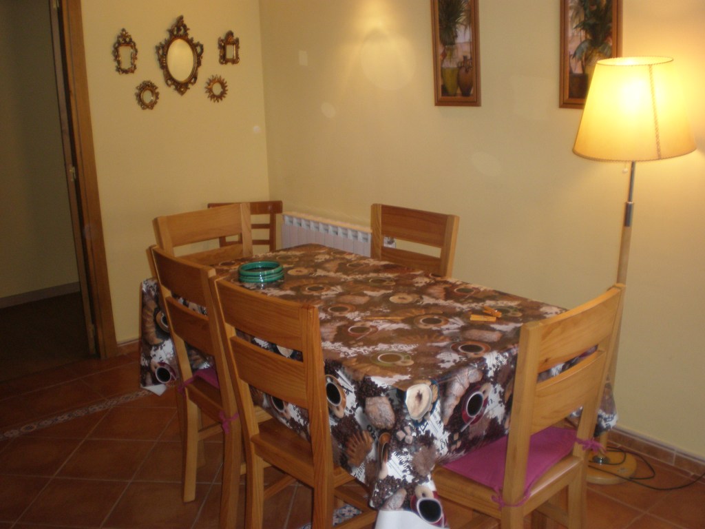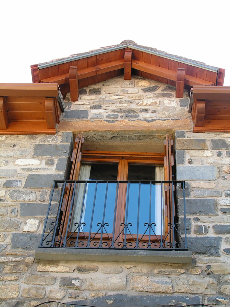 El Apartamento Bisaurín se encuentra en la planta superior de la Casa. Al entrar por la puerta nos encontramos en un pequeño patio desde el cual, a través de las escaleras, llegamos al comedor y a la cocina. Junto al comedor se encuentra un pasillo que conecta las habitaciones y el baño.