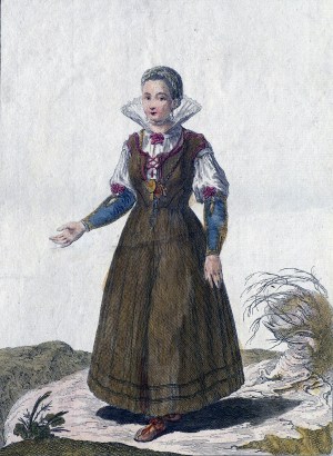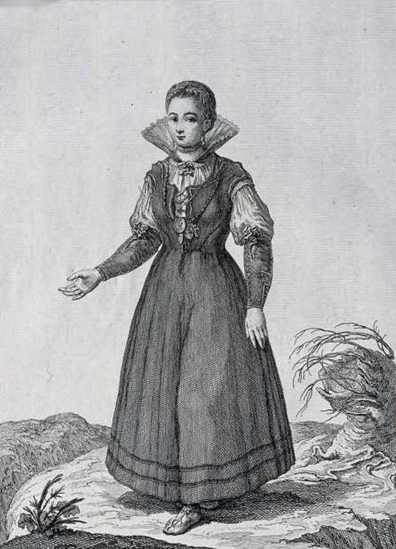 Una descripción detallada basada en la estampa original puede encontrarse en “Estampas de indumentaria aragonesa de los siglos XVIII y XIX” de Fernando Maneros López: